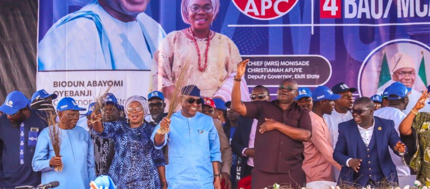 Governor Biodun Oyebanji has urged Ekiti residents to support President Bola Ahmed Tinubu’s re-election. Speaking at a rally in Ikere-Ekiti, he welcomed former PDP candidate Henrich Akomolafe and his supporters into the APC. Oyebanji said a second term for Tinubu would boost development in Ekiti and Nigeria. He called for at least 600,000 votes for the president, saying less would not reflect the state’s support.