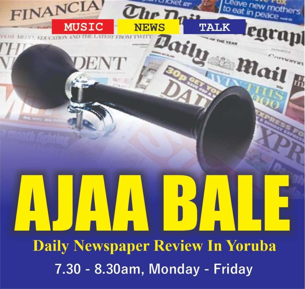Join our lineup, AJAA BALE, a daily newspaper review in Yoruba. Stay informed with the latest news, music, and talk every weekday morning.