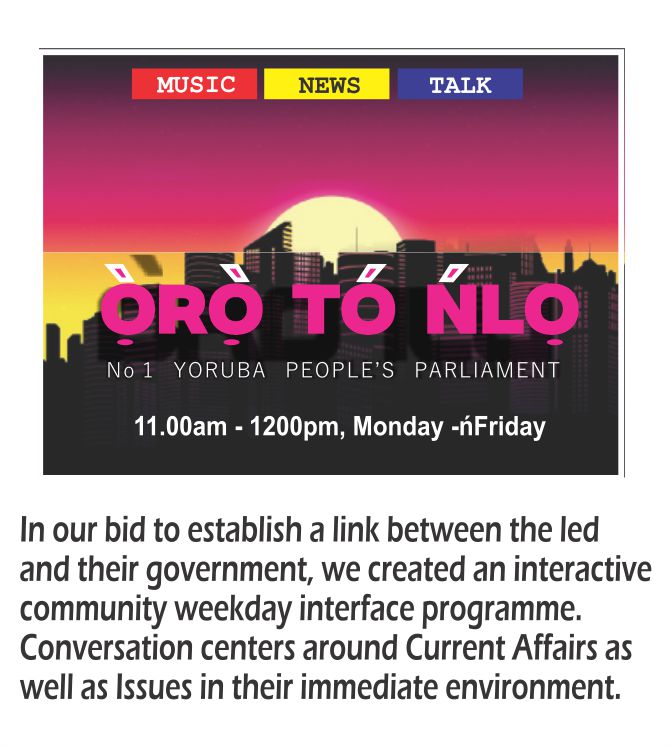 Do not miss out on the No. 1 Yoruba People’s Parliament. Tune in to Òrò Tó n Lo every weekday morning and be part of an informed and engaged community.